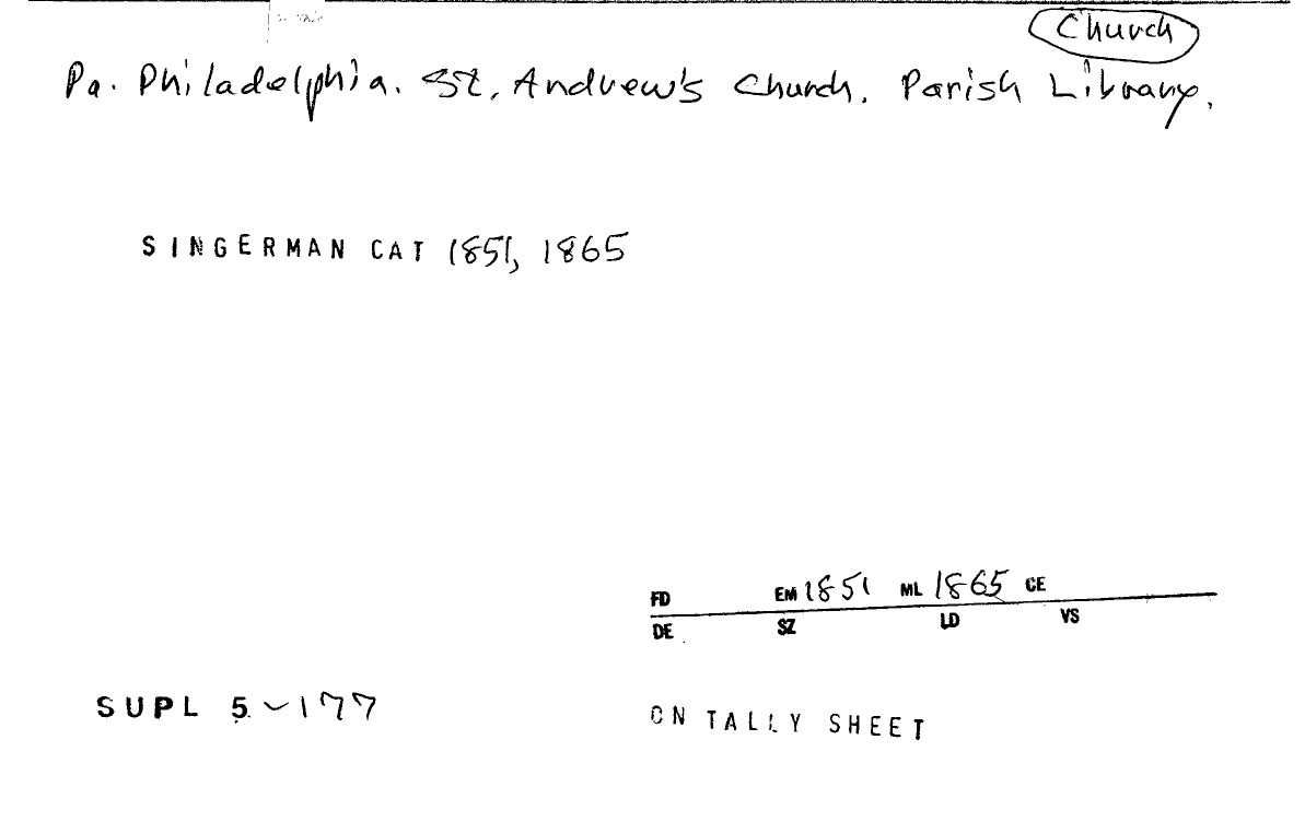 - "St. Andrews Church Parish Library", American Libraries before 1876, Princeton University Library